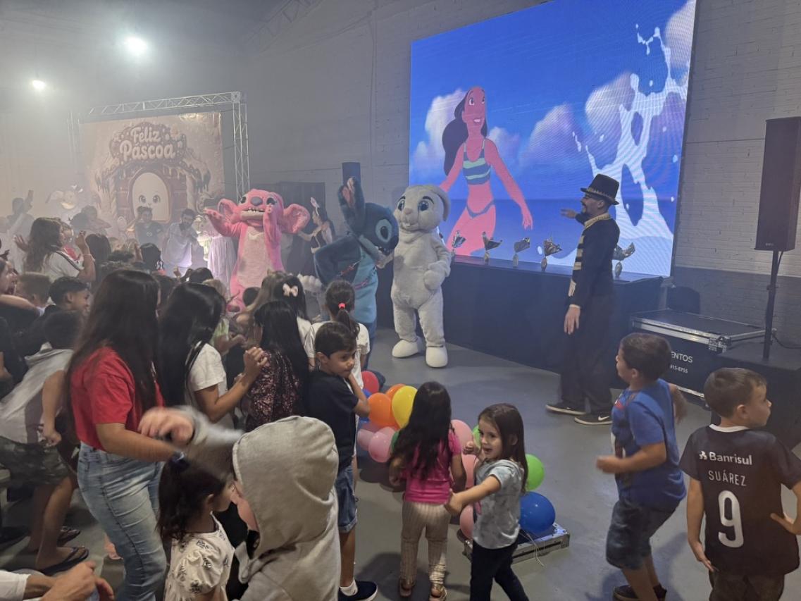 A abertura da Páscoa 2026, aconteceu na quarta-feira (01), no pavilhão do Vila Maria, no bairro Araucária Park. Tivemos cinema sobre a história da Páscoa, e também, uma festa para lá de animada, com a turma do Coelhinho da Páscoa.