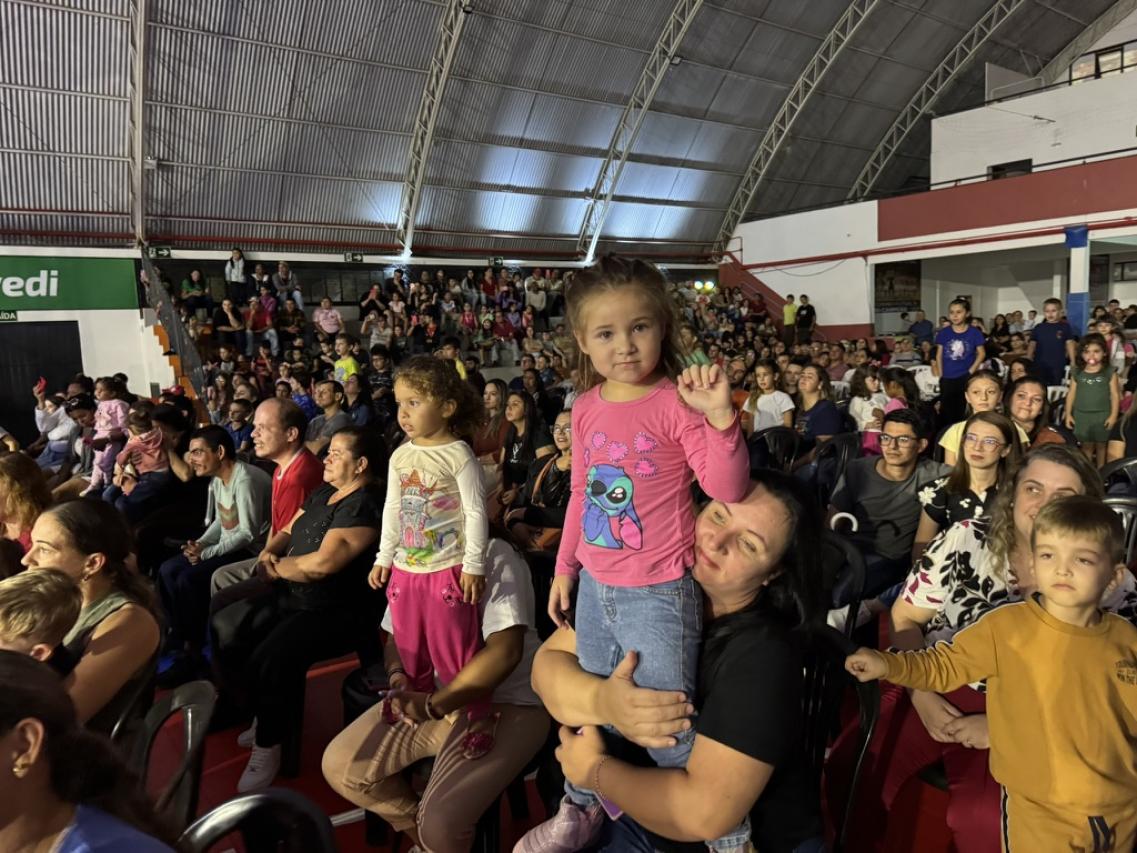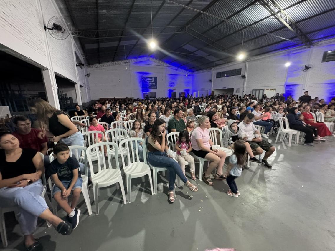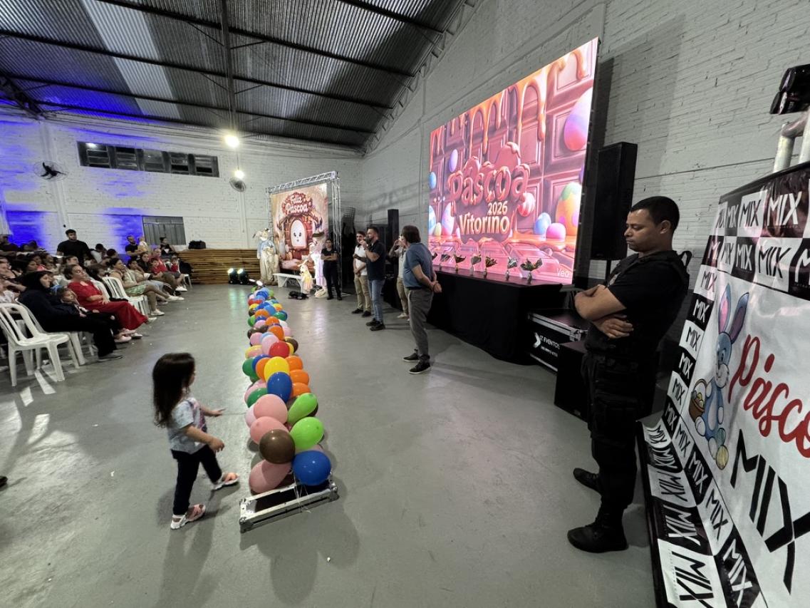 Já na quinta-feira (02), a festa da Páscoa 2026 ocorreu no Ginásio Ademir Zilio, para centenas de famílias vitorinenses. No palco, um espetáculo de Páscoa, com todas as variedades da Páscoa e a verdadeira e linda história de redenção através de Cristo. É claro, que o coelhinho trouxe também uma festa digna de Circo, e fez a criançada pular de alegria!