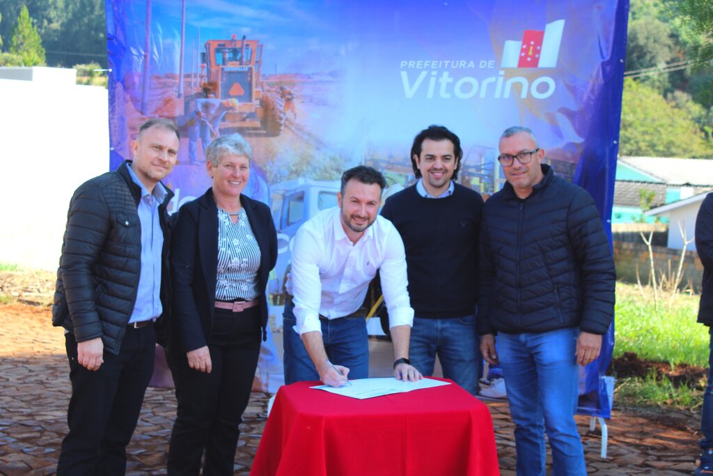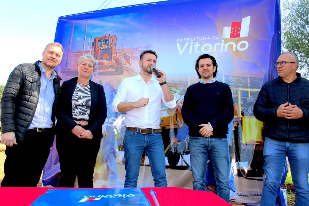 Na manhã desta sexta 01, a Prefeitura de Vitorino realizou autorização para início das obras de pavimentação asfáltica, calçadas, drenagem e sinalização de trânsito. As vias urbanas contempladas estão no bairro Gobatto, Aves do Paraíso e a Avenida das Araucárias, no bairro Araucária Park. No total, serão 5 mil metros de calçada e 21 mil metros quadrados de asfalto.