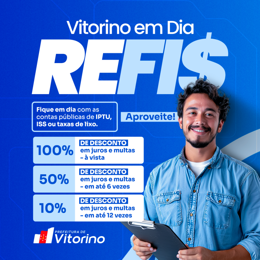 Através do programa Vitorino em Dia, a administração municipal lança seu Programa de Recuperação Fiscal, com o objetivo de possibilitar aos contribuintes a regularização de seus créditos tributários e não tributários devidos ao município de Vitorino.