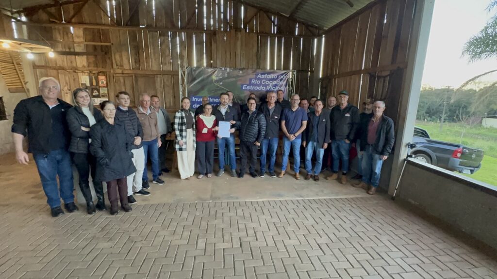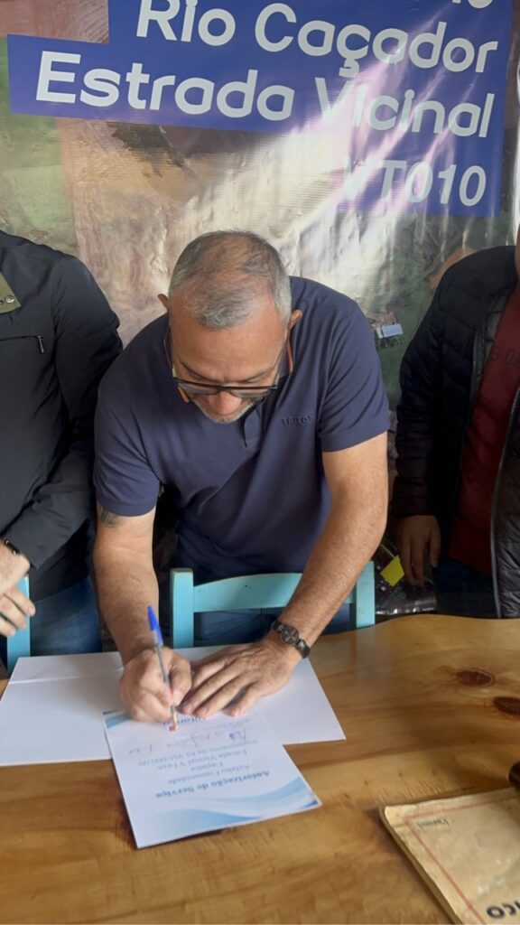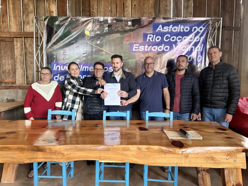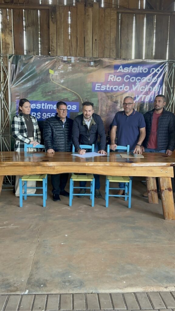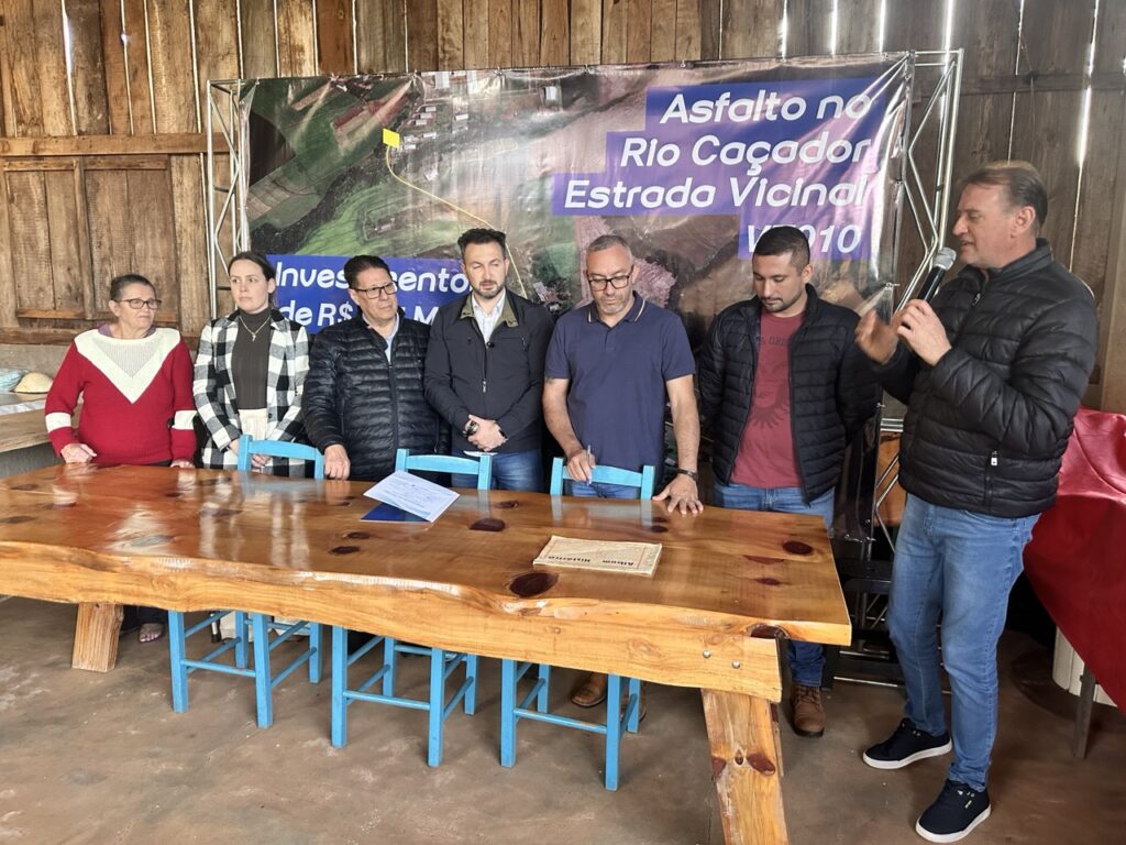 No final da tarde da última quinta-feira (27), na propriedade onde ficava a Antiga Madeireira, foi autorizado a obra de pavimentação asfáltica, no trecho da Estrada Vicinal VT010, com investimentos totais de R$ 955 mil, que possibilitará a continuidade do asfalto que liga a comunidade à Rodovia PRC-280. Segundo Júlio Chini, representante da comunidade Rio Caçador “Está chegando o asfalto tão sonhado, que sempre cobrávamos e agora chegou. Quero agradecer também à comunidade, que sempre está presente, quando precisamos estar unidos”, afirmou.