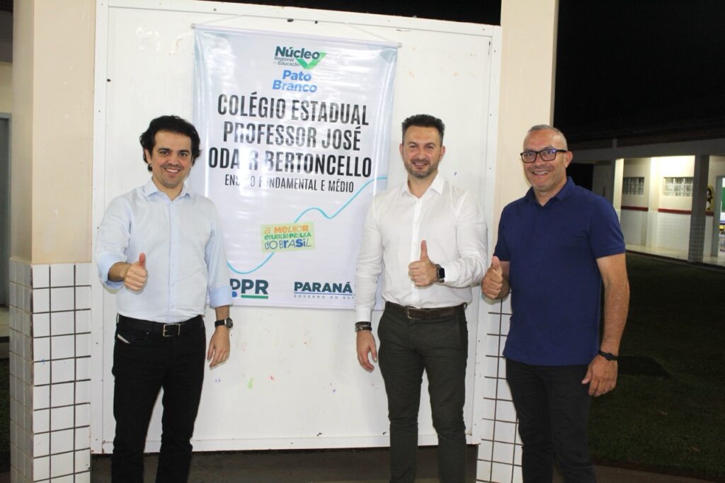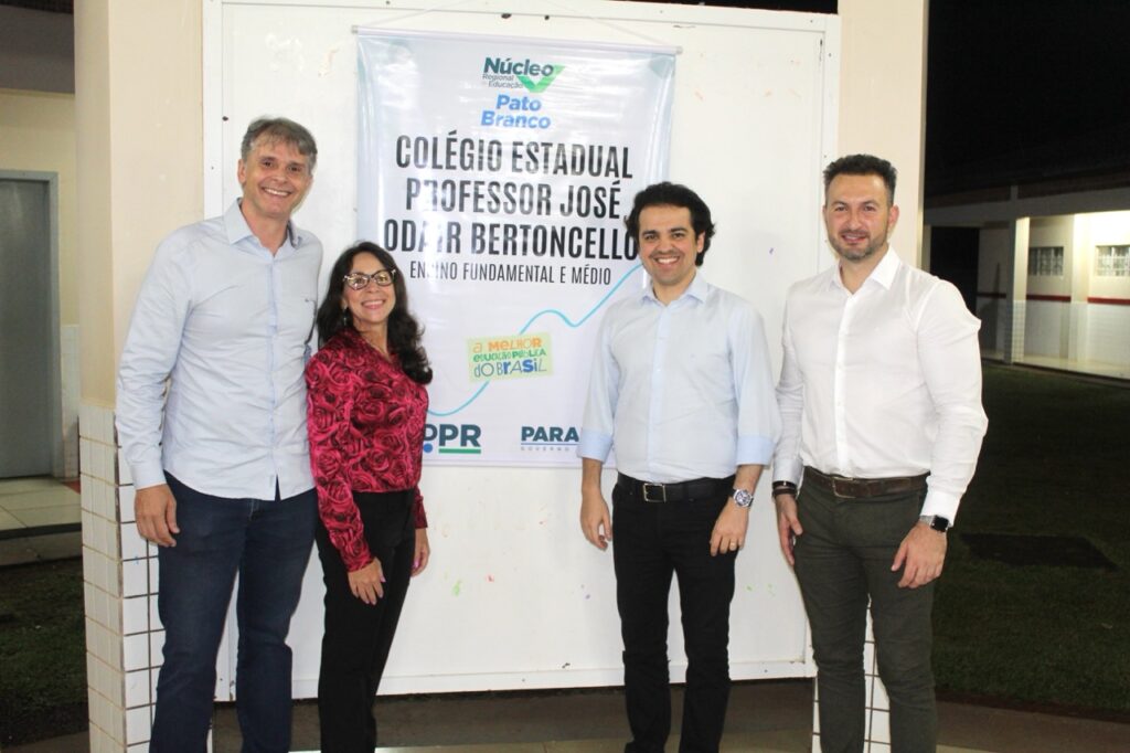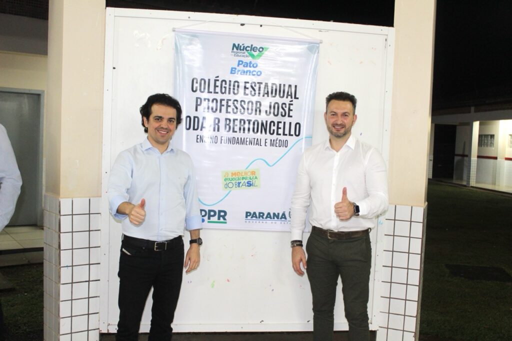 A noite de inauguração oficial do Colégio Estadual José Odair Bertoncello, ocorreu na última quinta-feira (29). Com a presença da comunidade do bairro Araucária Park, da comunidade escolar, do prefeito Marciano Vottri, e também do deputado estadual Luiz Fernando Guerra, foi dada a largada oficialmente para a operação, em modelo de dualidade, da Escola Estadual José Odair Bertoncello, que funcionará nas estruturas da Escola Municipal Alézio Gervásio Fin, ofertando sexto, sétimo, oitavo e nono ano do Ensino Fundamental, e consequentemente, os anos do Ensino Médio.