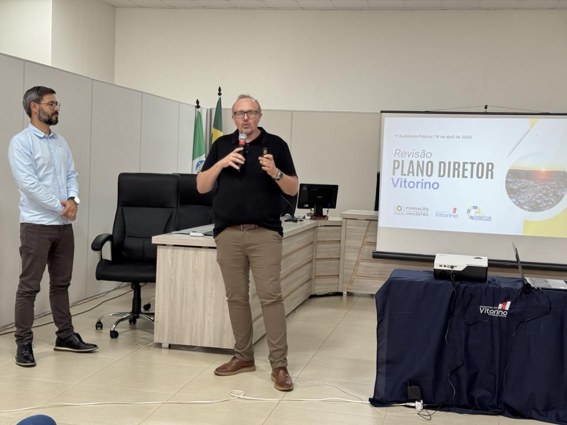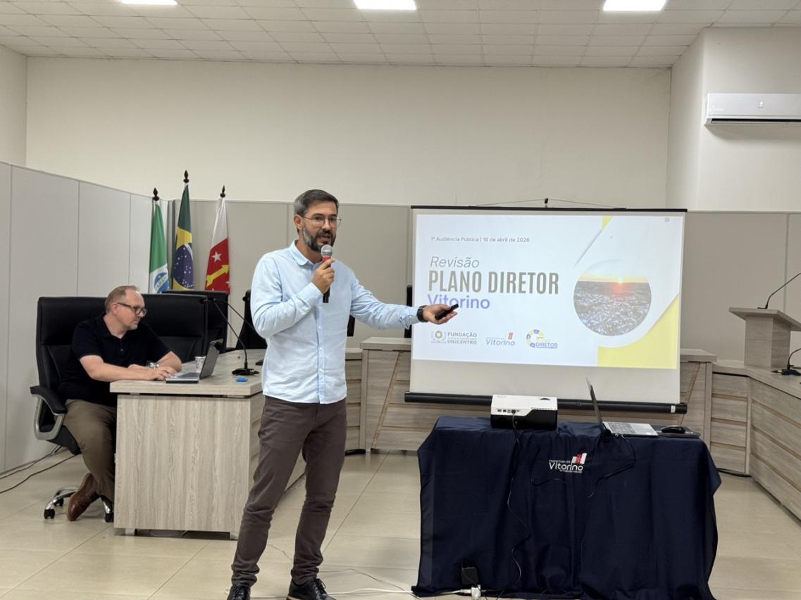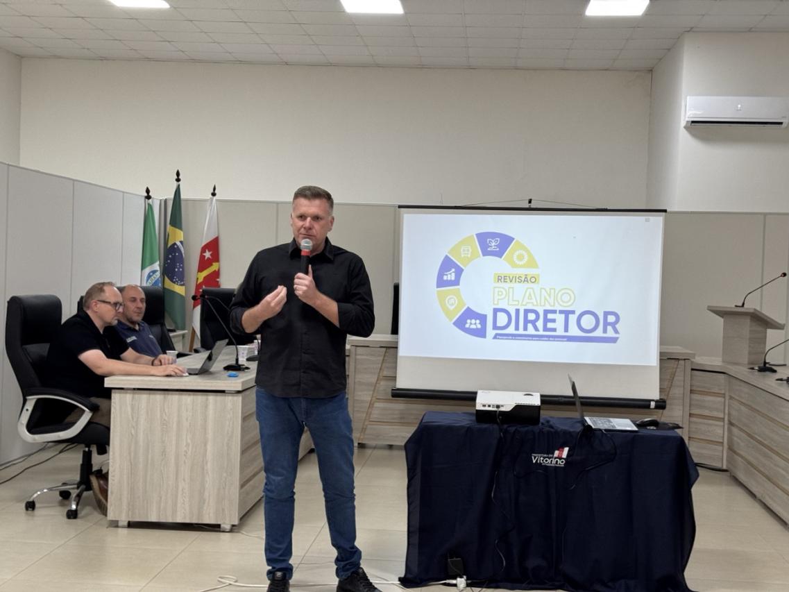 Com objetivo de planejar o futuro da cidade, o trabalho se dará pelos próximos 11 meses e será realizado em uma metodologia dividida em 5 fases, que garantam o planejamento urbano municipal, dentro do que sociedade precisa e merece, e alinhado às exigências das principais legislações (LDO, LOA, LOM, Planos Setoriais do Governo do Estado, Plano de Desenvolvimento Regional em que o município se insere, Lei da Responsabilidade na Gestão Fiscal, Agenda 2030, entre outras). Tendo a vigência de 10 anos, o Plano Diretor Municipal de Vitorino não era atualizado desde 2014, e só não foi atualizada em 2024 por conta do ano eleitoral. Em 2025, o GTP iniciou os trabalhos com a 7ª Conferência Municipal das Cidades, que preparou os conselhos e trouxe orientações à sociedade para a necessidade de revisão do Plano Diretor. A partir disso, iniciou-se o processo interno de contratação da Consultoria Técnica, e agora, através do contrato nº 03/2026, firmado entre o Município e a FAU, começaram de forma definitiva os trabalhos da revisão do PDM, seguindo as diretrizes do Estatuto da Cidade e do Programa Paraná Cidade.
